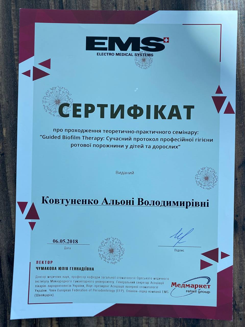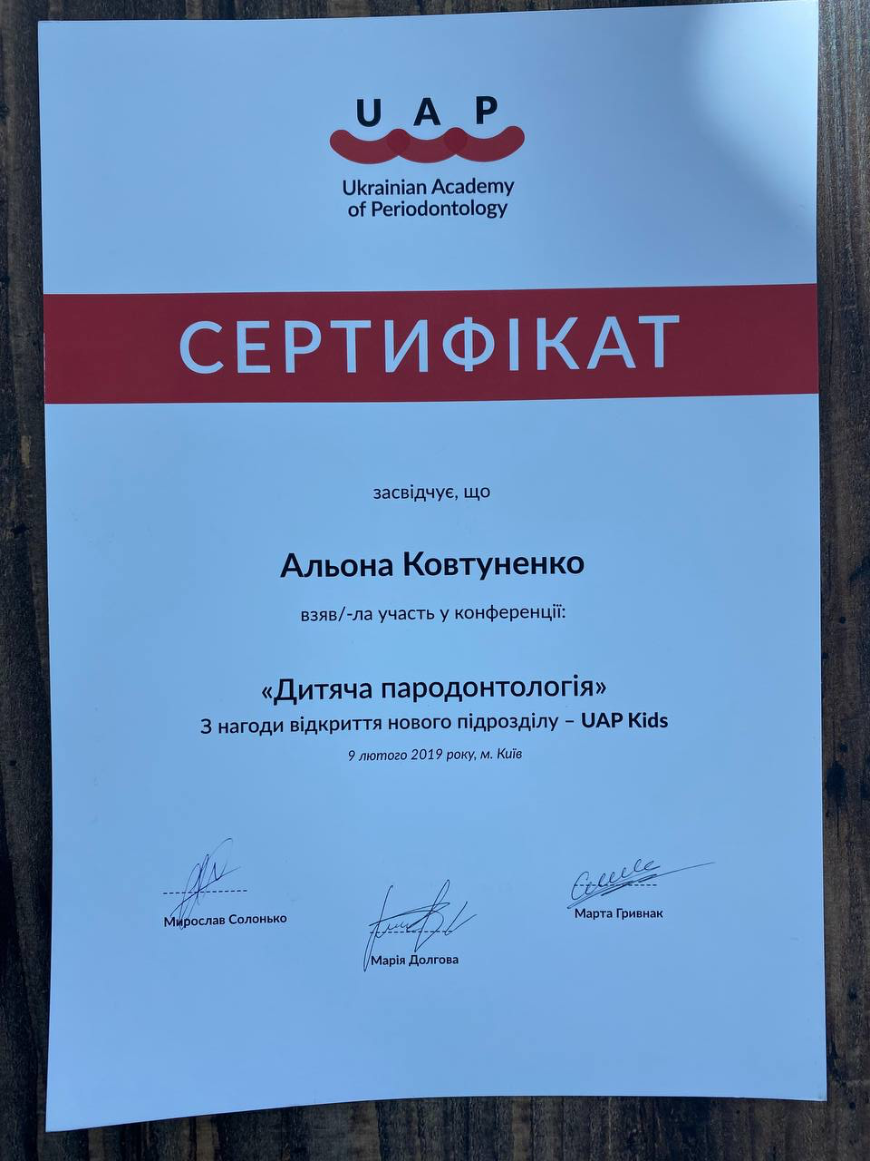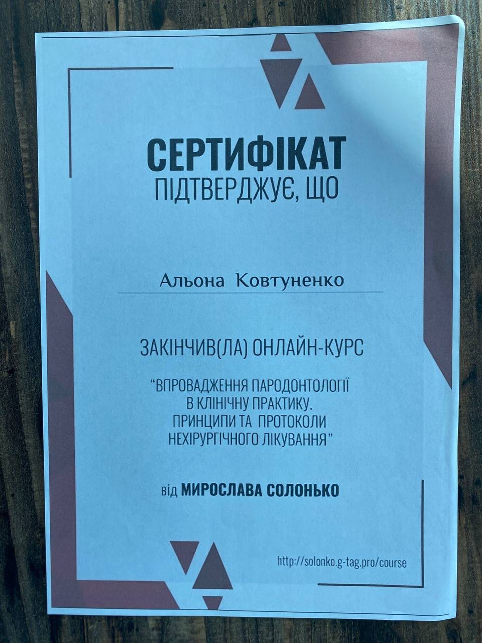 Член украинской академии пародонтологии. Занимается ведением пациентов с комплексными планами лечения.