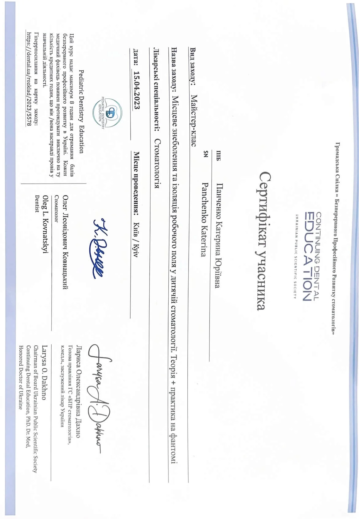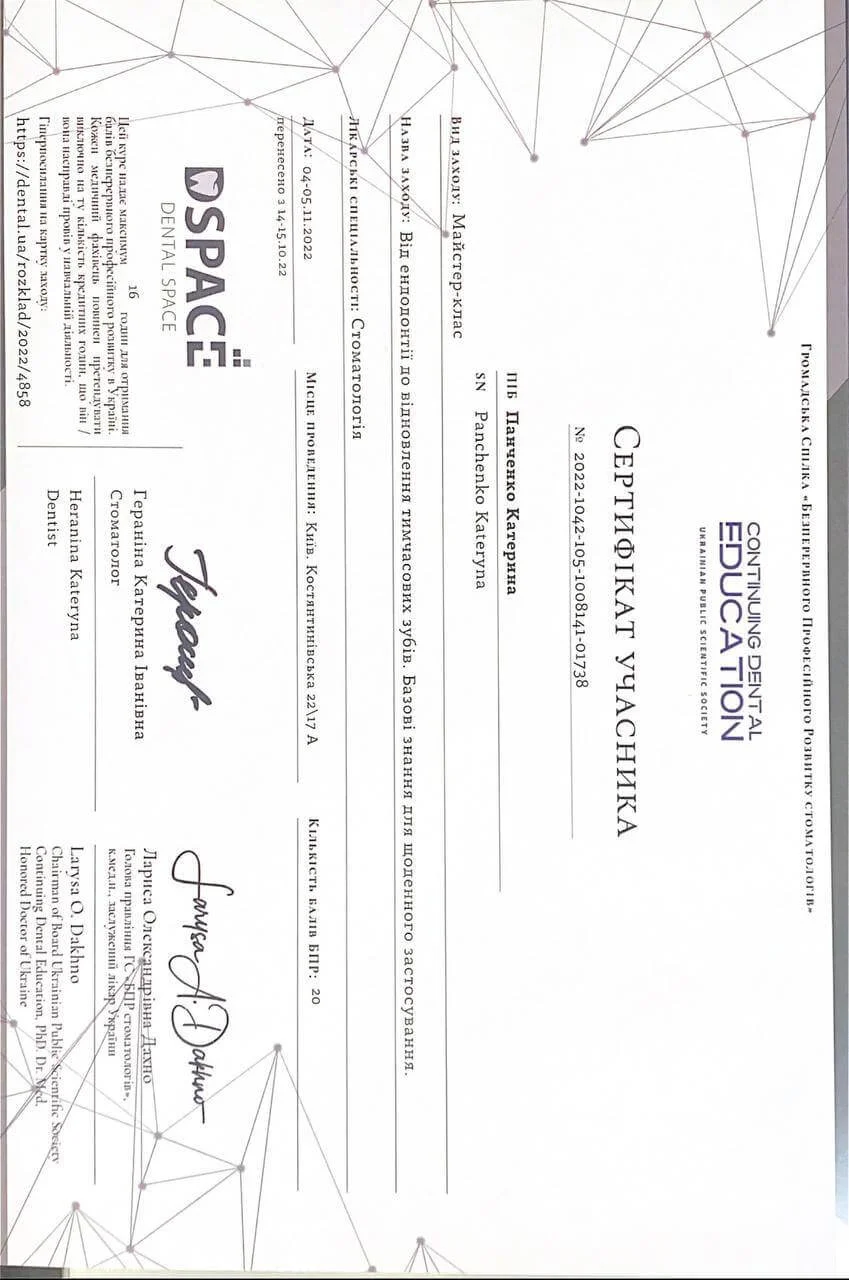 "Стандартные коронки в детской стоматологии", PDE, г. Черкассы.